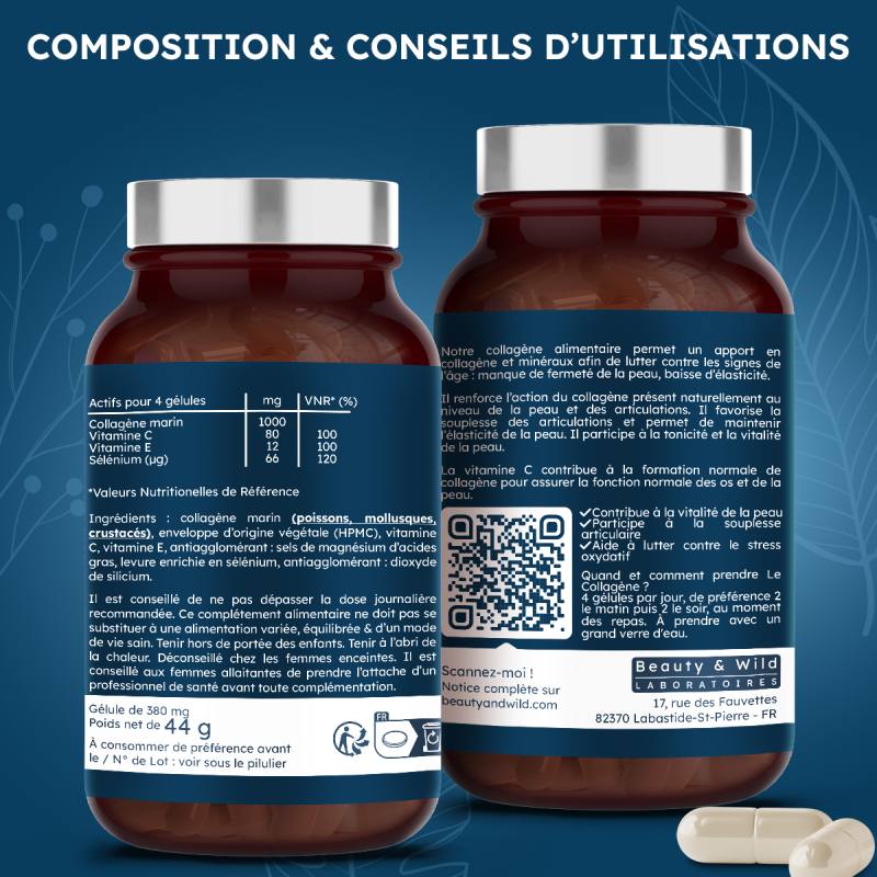 - Le collagène est un excellent actif réputé pour améliorer la santé de la peau et des articulations.
