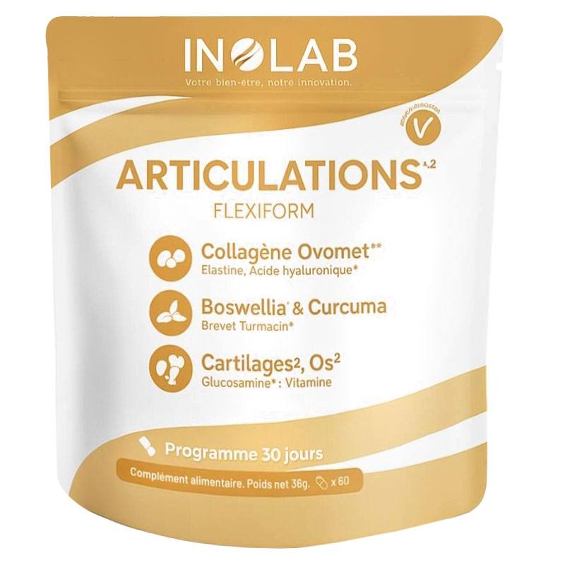Flexiform est un complément innovant pour les articulations (1,2,3) formulé avec deux brevets – Ovomet® collagène de membrane d’œuf types I, V et X et Turmacin® (extrait de Curcuma longa) – un extrait de Boswellia serrata titré en acides boswelliques et de la vitamine C naturelle (acérola).