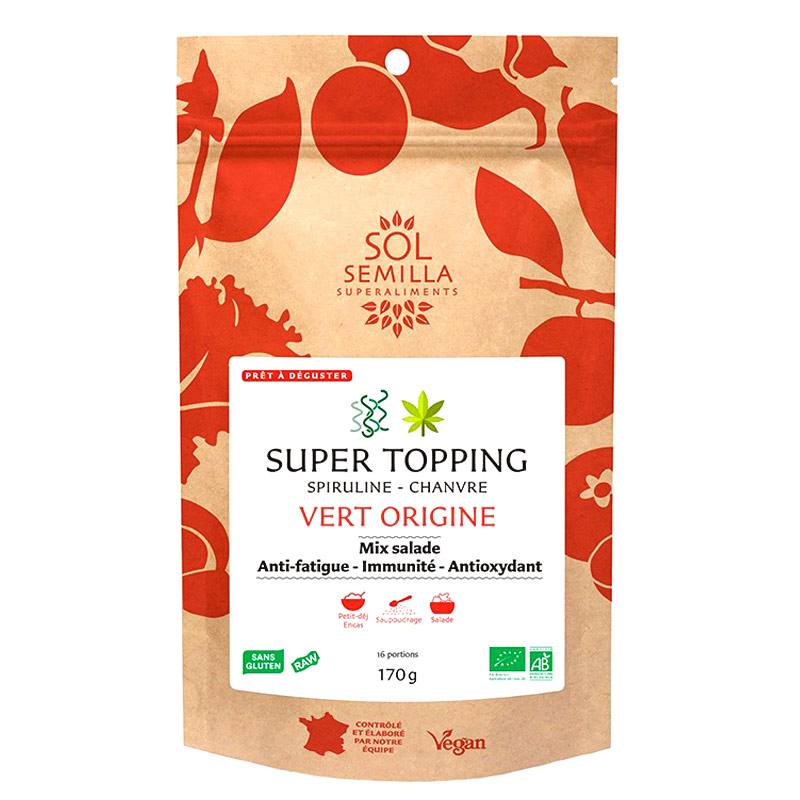 Le Supertopping Vert origine de Sol Semilla est un savant mélange de graines et de spiruline. Gourmand et équilibré, 100 % cru pour un max de nutriments, sans huile, ni sucres ajoutés.