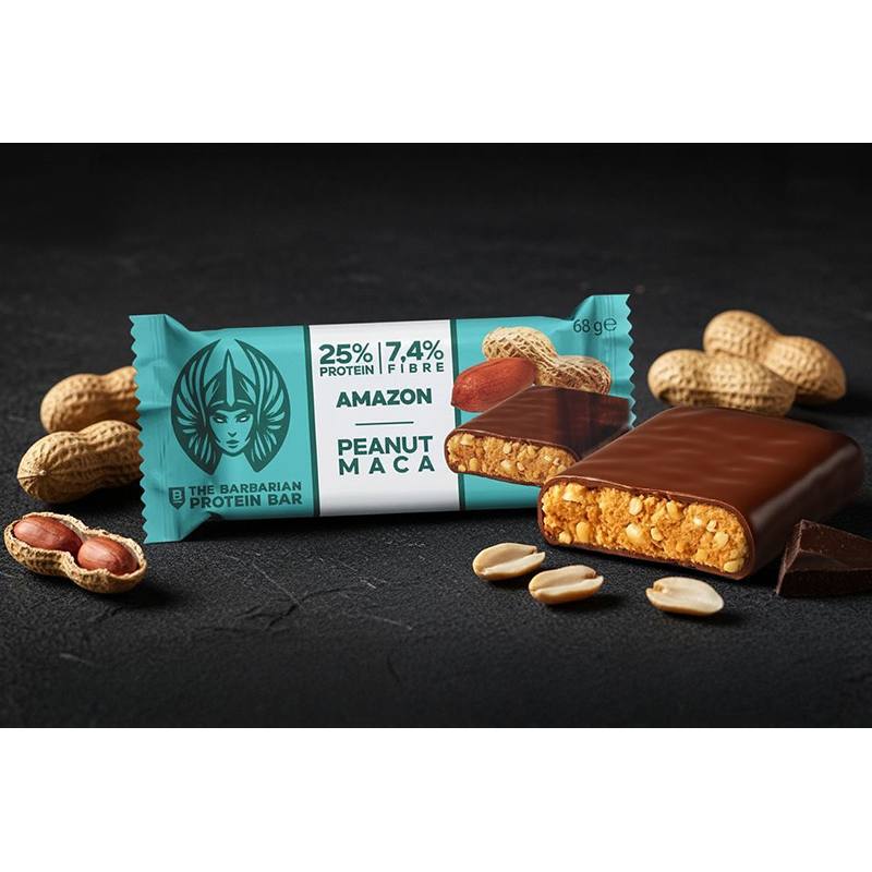 Délicieuse barre protéinée fourrée aux cacahuètes et au maca, enrobée de chocolat noir de qualité supérieure. Un choix idéal pour une collation ou un petit-déjeuner : extrêmement savoureuse, elle apporte énergie et nutriments essentiels. Bio, végane, sans gluten.