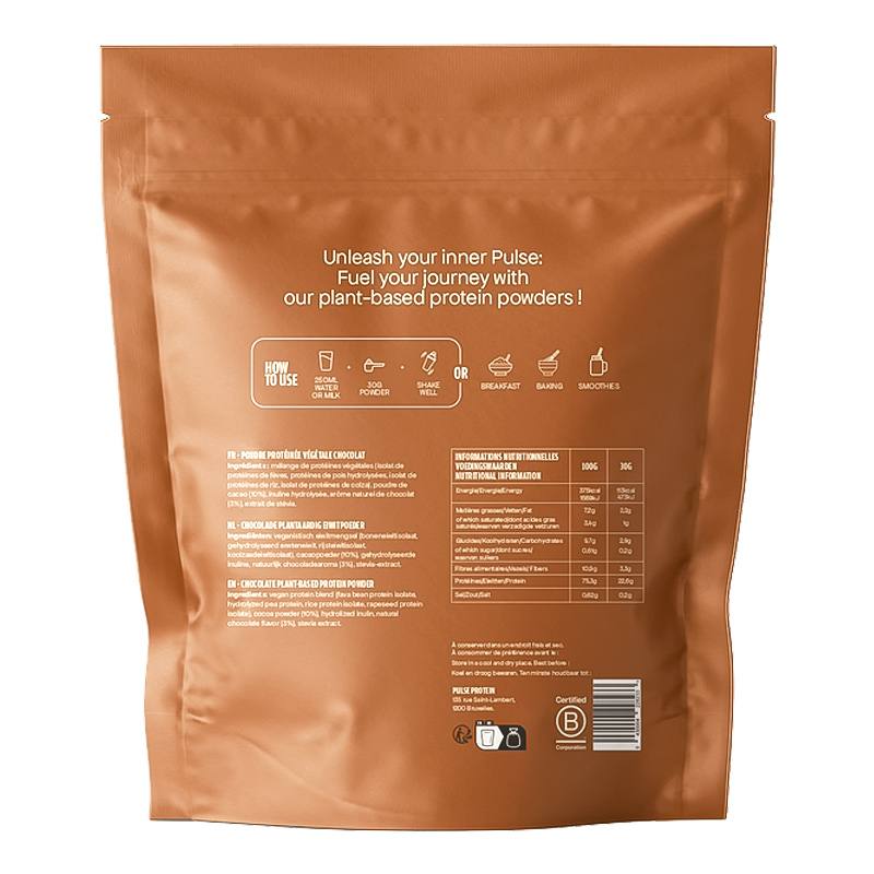 La Protéine végétale chocolat de Pulse est un produit idéal pour ceux qui recherchent une source de protéines saine avec un délicieux goût chocolaté.